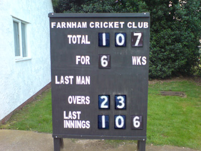 Farnham CC: 107 for 6 in 23.3 overs